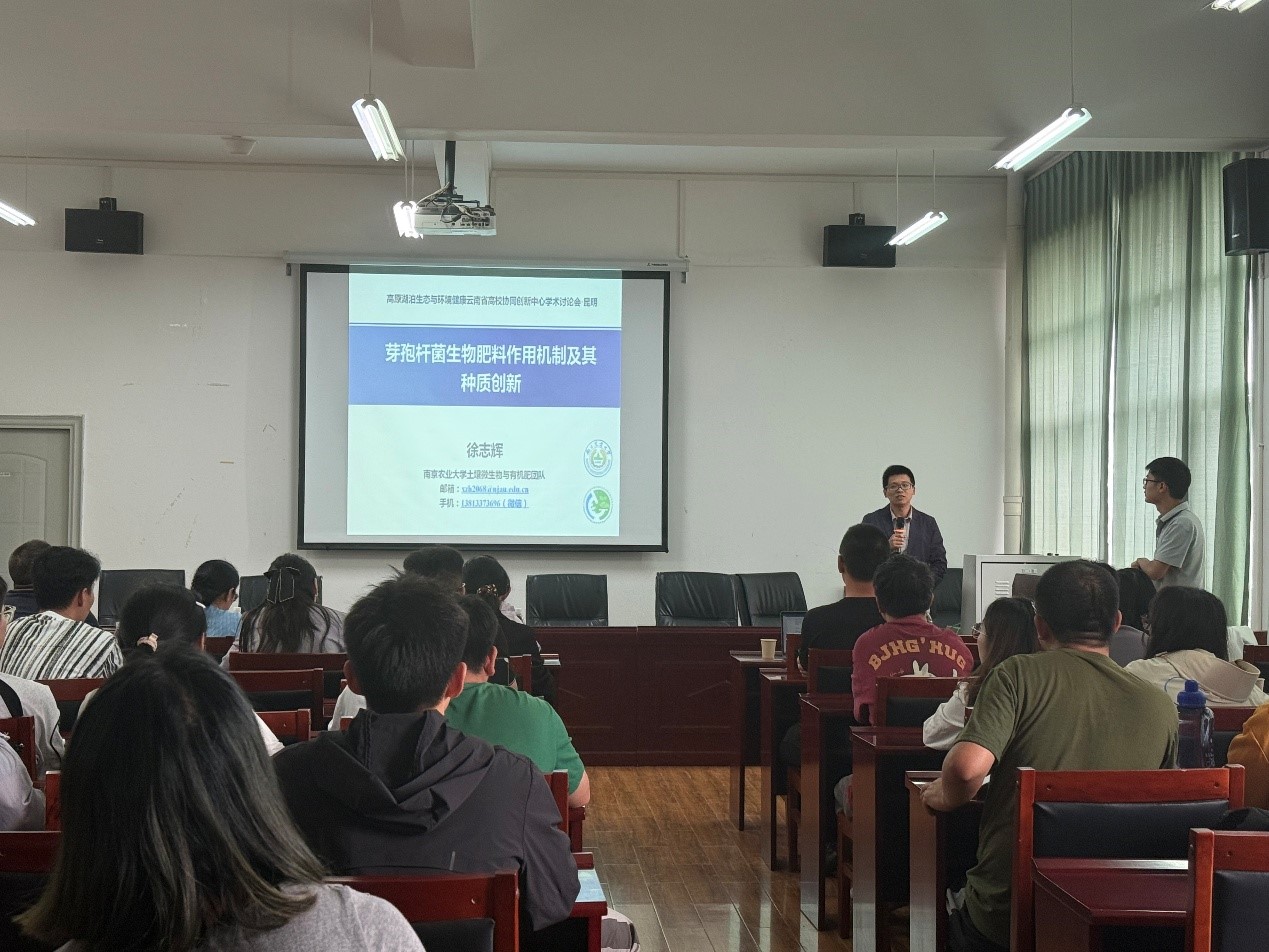 19日下午,参会代表在农生学院开展学术研讨会。研讨会由农生学院向乾乾博士、字劲眉博士共同主持,围绕“生物肥料、生态修复、风险防控”三大方向展开研讨。其中,南京农业大学徐志辉教授(土壤微生物与有机肥研究团队核心成员)分享了团队开展的“芽孢杆菌生物肥料作用机制及其种质创新”研究;报告结合团队在生物肥料领域的研究实践,系统解析了芽孢杆菌的作用原理与种质创新路径,为我校师生深入理解农业绿色生产技术提供了清晰的研究思路与前沿方向。昆明学院任禛教授通过“云南东川铜尾矿AMF-植物联合修复组合筛选及作用机理研究”的报告; 阐明了针对本土矿区土壤退化、生态功能恢复等修复难题的研究思路与科学解决方案。西南林业大学向萍研究员探讨了“地质高背景区农林源食品重金属人群膳食健康风险精细化评估与有效阻控研究”,展示通过科研创新破解区域食品安全难题、助力食品安全保障的具体路径。
