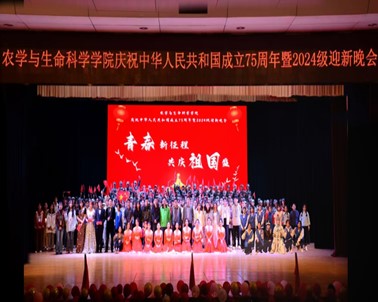 10月29日晚,农学与生命科学学院庆祝中华人民共和国成立75周年暨2024级迎新晚会在学生会堂顺利举行。本次迎新晚会我们有幸邀请到了农学与生命科学学院党委书记刘开庆老师、院长夏体渊老师、副院长银立新老师、副院长任禛老师以及本学院各班辅导员、班主任和教师代表。同时,还荣幸邀请到云南华测检测认证有限公司人事经理张慧、昆明华图校长李娟与2024级全体师生齐聚一堂,在歌舞欢乐中隆重庆祝中华人民共和国成立75周年。